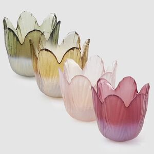 Расставленные вереницей на окне (или где угодно по вашему желанию) подсвечники для чайных свечей заметно освежают интерьер мазками светлой пастели и устраивают настоящее светопреставление в сумерках, стоит лишь запалить фитили спрятанных в них свечей. Если же требуется создать романтичный полумрак, используйте стеклянные подсвечники порознь, разместив их в разных локациях комнаты или стола.