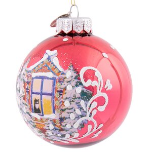 Елочный шар разукрашен так щедро, что поначалу разбегаются глаза. Хочется рассмотреть и прихотливые узоры, петляющие по рубиновым бокам, и укутанные снегом елки, и цветные наличники. Но центром композиции всегда остается окно с теплым желтым светом и кошкой, устроившейся у стекла. Именно из-за уютной, убаюкивающей атмосферы, которую они создают, в первую очередь и хочется повесить новогодний шар на елку.