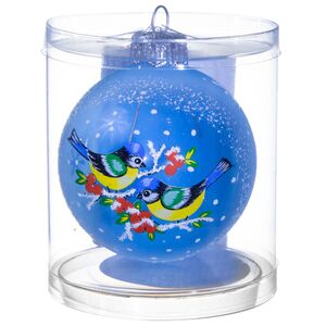 Стеклянный елочный шар Орбита от Фабрики Елочка красиво дополнит новогоднюю композицию. На заснеженных ветках с комфортом устроились две лесные птички - синички. Ручная роспись выполнена в лучших традициях старейшего российского производителя новогодних украшений.
