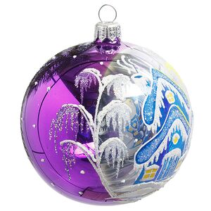 Согласно легенде на этом стеклянном шаре с рисунком изображен тот самый теремок, где и потолок ледяной, и дверь скрипучая, и где живет сама Зима. По слухам, разрисовывал его художник, сидя на опушке, пока хозяйка ходила на охоту и одевала лес в праздничные наряды.