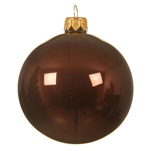 Стеклянный ёлочный шар в каштановом цвете внесёт благородный акцент и подчеркнёт королевский шарм образа вашего деревца. Глянцевая фактура и притягательный оттенок - ничего лишнего, однако именно такая классика, в которой сочетаются традиционные формы новогоднего декора и частичка современного дизайна, и способна создать поистине праздничное настроение!