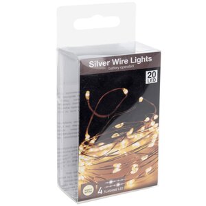 Светодиодная гирлянда Роса на батарейках 2 м, 20 экстра теплых белых мини LED ламп, серебряная проволока, IP20