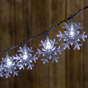 Трудно найти более совершенное творение природы, чем снежинки! Поэтому именно они так часто украшают наши интерьеры в зимнее время. Электрогирлянда на елку с ажурными посланниками зимы создаст в комнате ощущение заснеженной поляны, а зеленую гостью превратит в роскошную королеву морозного леса! Лампочки излучают холодный белый свет и предназначены для использования в помещении.