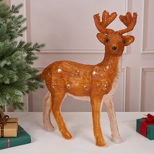 Этот рыжий Олененок Бакли совсем еще малыш, но посмотрите, с какой серьезностью он подготовился к Новому году! Расчесал пятнистую шерстку, отрастил ветвистые рога, а напоследок искупался в лунном озере, чтобы приобрести волшебное сияние, рассеивающее хмурость дня и мрак ночи. Поставьте светодиодную фигуру Оленя на под елку, в композицию или на улицу около дома, и этот малыш станет источником маленькой радости на все праздники.