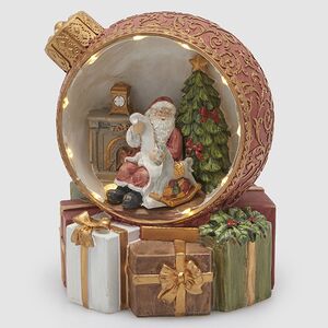 Шар с музыкой мягко сияет в полумраке, поблескивая золотыми завитками, и кажется, будто вы не новогодним декором любуетесь, а заглядываете в окно встретившейся на пути избушки … Тсс! Похоже, Санта услышал скрип снега и поднял голову, гадая, кто бродит снаружи по сугробам!.. Садитесь-ка в кресло с чашкой душистого чая и насладитесь ощущением того, как композиция с подсветкой тихонько наполняет вечер чудесами.