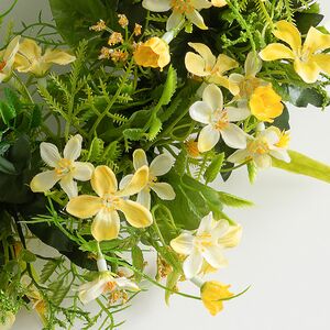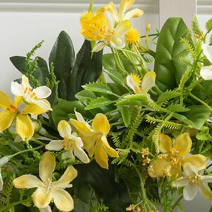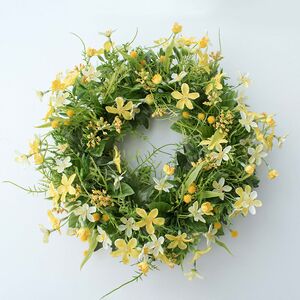 Украшение на дверь в виде венка Gorgeous - Луговые Цветы вдохнет в пространство теплые краски весны! Венок собран из множества искусственных зеленых трав и дополнен нежными желтыми цветками - идеальное сочетание элементов и оттенков для оформления интерьера к Пасхе и для круглогодичного декора.