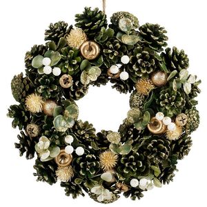 Прочувствуйте атмосферу настоящего волшебного леса вместе с новым венком из еловых шишек! Его создал голландский бренд Edelman, воплотив в жизнь еще одну гениальную задумку. Разглядывать еловый венок можно бесконечно - тут есть и окрашенные в изумрудно-зеленый цвет шишки, и округлые листочки, и какие-то чудесные растения. Все это эффектно сочетается с золотистым декором и блестками, которые подчеркивают торжественную новогоднюю атмосферу.
