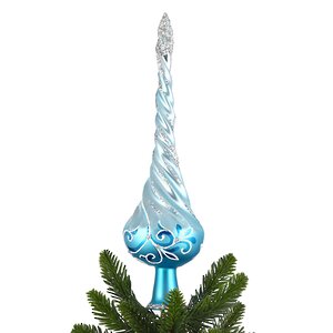 Дивную елочную верхушку создали для украшения ваших елочек русские кудесники! Наконечник, изготовленный клинской фабрикой Елочка и в самом деле напоминает снежный вихрь. Игрушка выполнена из стекла в потрясающем синем цвете, декорирована переливающимися блестками и чудесными узорами. Спиральный конец верхушки станет ярким акцентом и прекрасным дополнением новогоднего образа пушистой лесной красавицы.