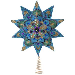 Насыщенные оттенки павлиньего хвоста, сверкающие стразы и блестки, щедро распахнутый навстречу празднику десяток лучей - елочной Вифлеемской звезде от Kurts Adler не требуется подсветка, чтобы излучать радость грядущего праздника и возвышаться на кроне деревца в качестве главенствующего украшения.