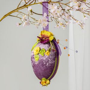 Декоративное пасхальное яйцо Velveto Lauro отделано бархатом, украшено цветами, бусинами и изящными тесемками. В таком антураже главный символ весеннего праздника выглядит хоть и необычно, но очень стильно и оригинально! Используйте подвесное украшение для декора композиций, гирлянд, веточек растений - в любой идее его винтажный шарм будет подчеркивать радость светлого торжества.