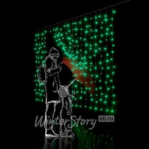 Световой занавес для улицы "PLAY LIGHT", облегченный, 300 зеленых LED ламп, коннектор (RL-CS2*1.5-T/G), ТМ Rich Led.